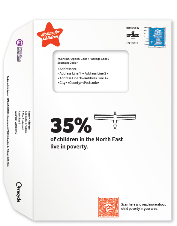 To coincide with the poverty report Action for Children were publishing, a fundraising direct mail was sent to all supporters on the subject. Previous mailers were usually just a letter and donation form, I was asked to created a mailer that would be more attention grabbing. The supplied copy was based on how poverty could be anywhere - even right outside your door.