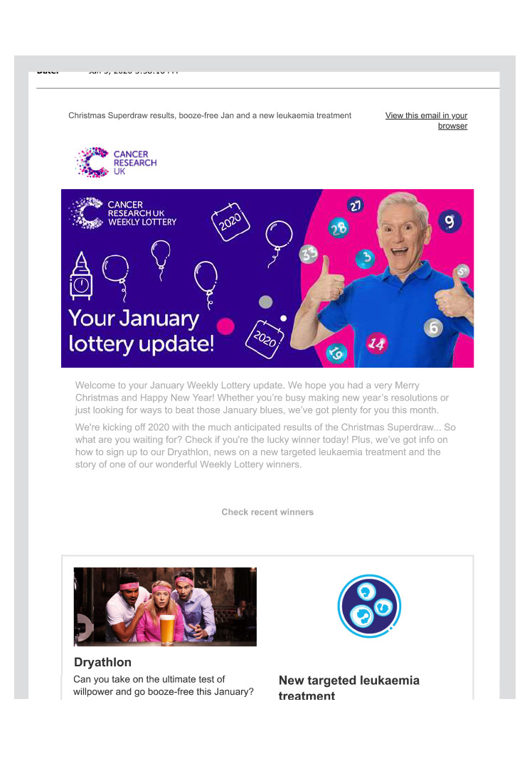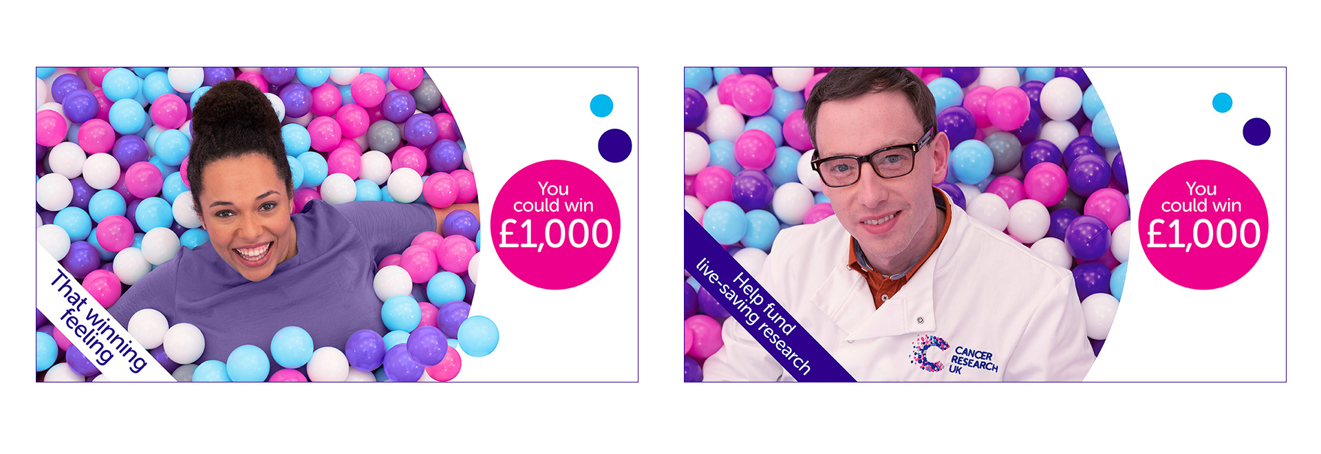 Cancer Research UK's weekly lottery is an opportunity to raise funds from a demographic that may not usually consider donating to charity. I created a number of assets for social media advertising the lottery to prospective players. Due to the limited run of these ads we were able to test a number of different images and call to actions.
